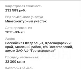 Продам землю для сельскохозяйственного производства, расположена между станицей Гостагаевская и село Фадеево.