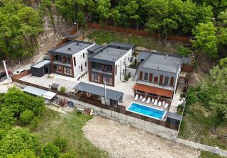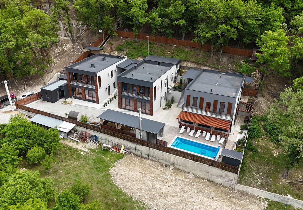 Продается уникальное домовладение в Горах Абрау, состоящее из трех современных домов и четырех благоустроенных земельных участков общей площадью 26,8 соток. Общая площадь зданий составляет 500,6 кв. М. Площадь каждого дома составляет 153,4 кв. М, 155,9 кв. М и 191,3 кв. М. Все дома выполнены с высококачественной отделкой и полностью готовы к заселению.
