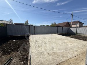 По периметру дома — отмостка, забетонированная площадка внутри участка для двух автомобилей.