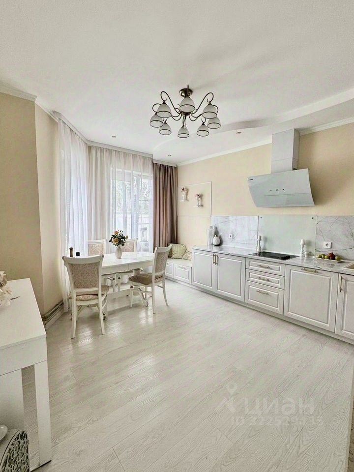 На кухне дорогостоящий дубовый стол и стулья, кухонный гарнитур выполнялся на заказ в Краснодаре.