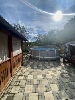 На территории расположена отличная рубленная баня, большой каркасный бассейн, качели. Территория утопает в зелени: молодой фруктовый сад, красивые туи и высокая капитальная теплица. Вся территория окружена капитальным забором, обеспечивающим безопасность и уединение.