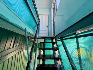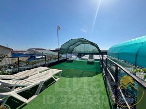 На третьем этаже - площадка для отдыха с шезлонгами, с видом на море.