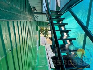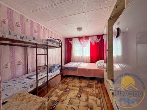 В доме три этажа, на двух этажах номера с кухнями и санузлами: на первом этаже - 2 номера, кухня, санузел; на втором этаже - 2 комнаты, кухня, санузел, квартирный блок с двумя комнатами, кухней, санузлом, полностью укомплектованы техникой, мебелью, посудой, бельём.
