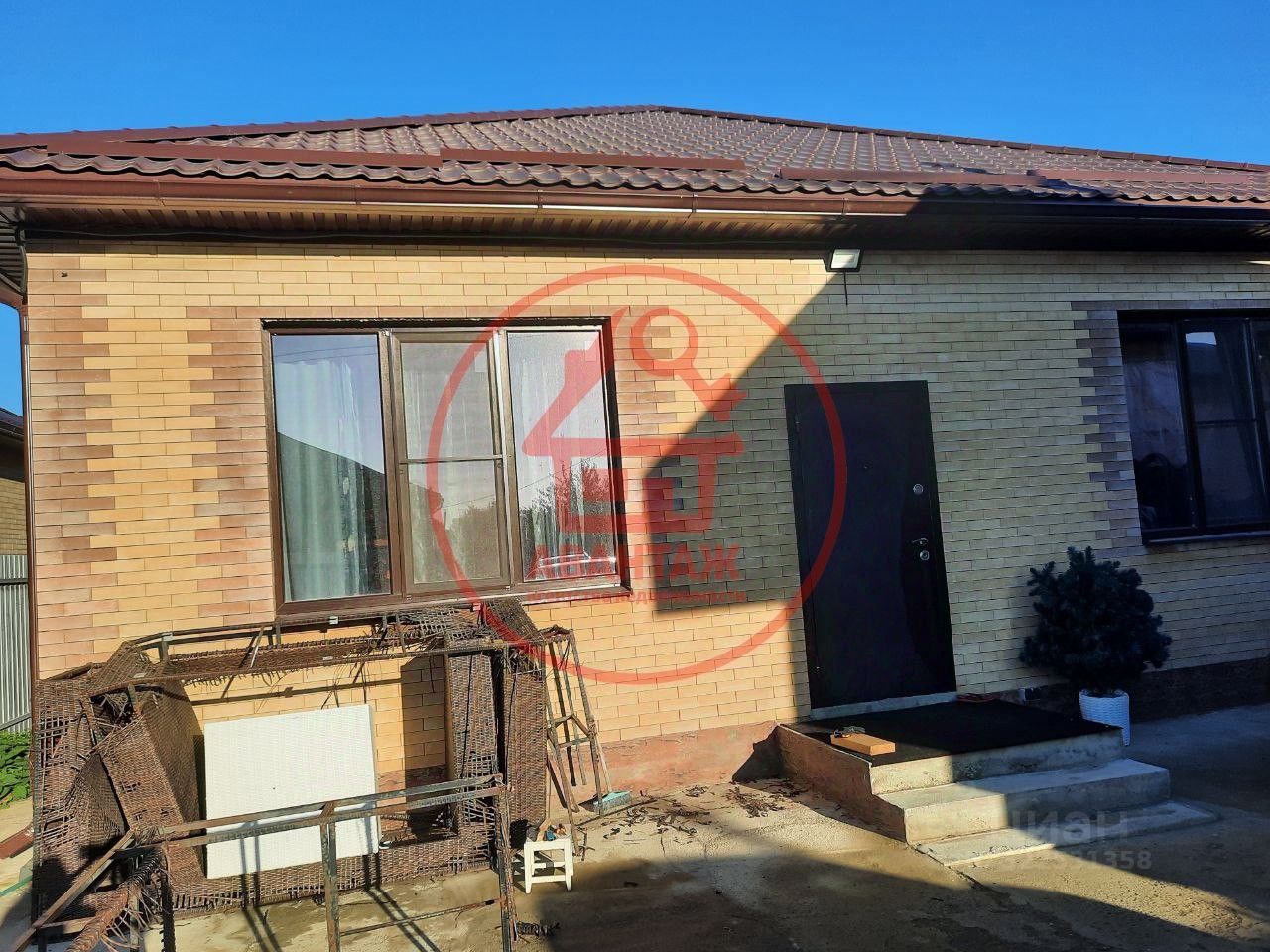 Облицовочный кирпич песочного оттенка и кровля шоколадного цвета гармонично дополняют друг друга, давая ощущение добротной классики.