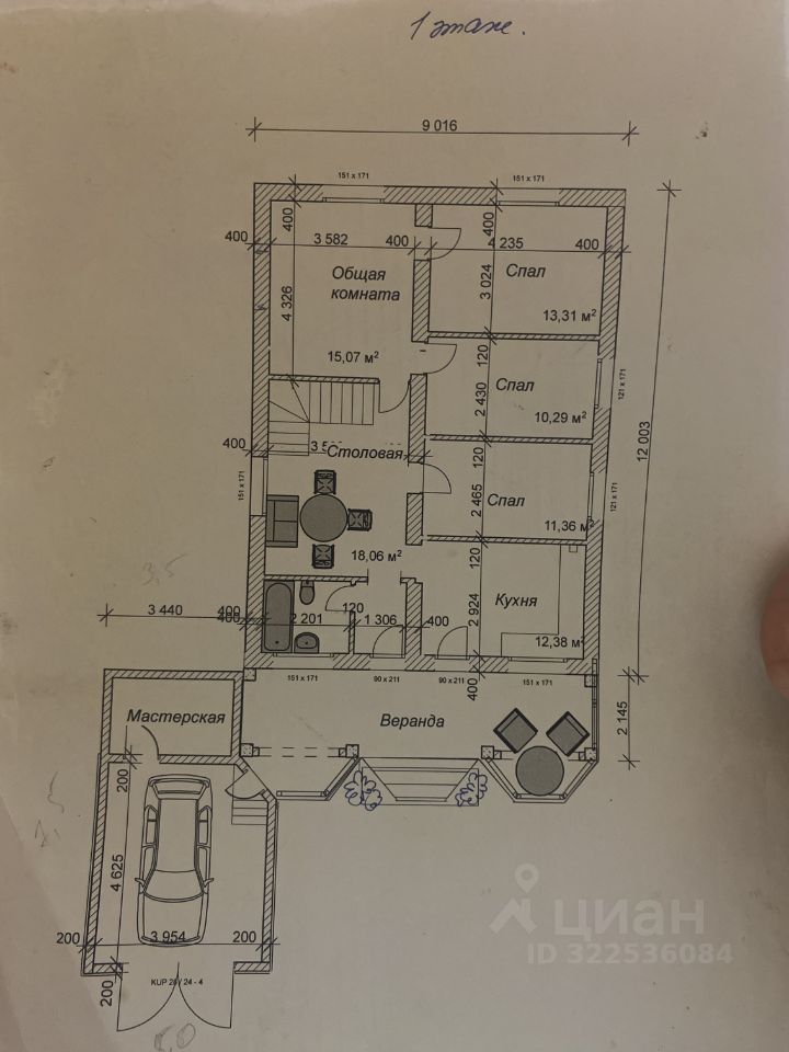 * Этажность: 1 этаж + проектная: веранда, мастерская
