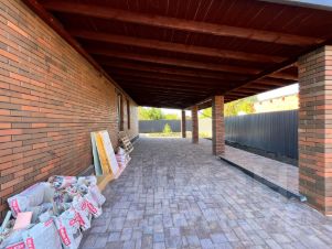 Крыша из страпилы 15*5 , зашита гидроизоляционой пленкой с контроейкой и металлочерепицей, утепление эковатой 18см всего подкровельного пространства , свесы от дома 70см по всему периметру крыши !