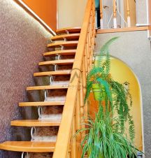 На втором этаже располагаются три спальни, санузел, большая лоджия, две кладовые. Между первым и вторым этажами установлена комфортная деревянная лестница с подсветкой.