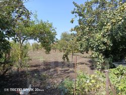 На участке посажены плодоносящие деревья, цветы.