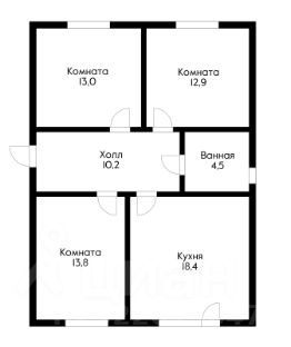 Планировка просторная кухня 18,4м2 с выходом на улицу! Жилые комнаты 13,8м2 и две комнаты по 13м". Совмещенный санузел 4,5м2!