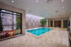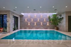 Из гостиной есть выход в крытую зону отдыха площадью 85 кв метров, где расположен бассейн с системой подогрева и рециркуляции, зона SPA с турецким хаммом и сауной.