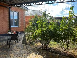 Во дворе уложена тротуарная плитка, сдалан навес, высажены розы. Установлено видеонаблюдение.