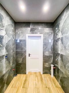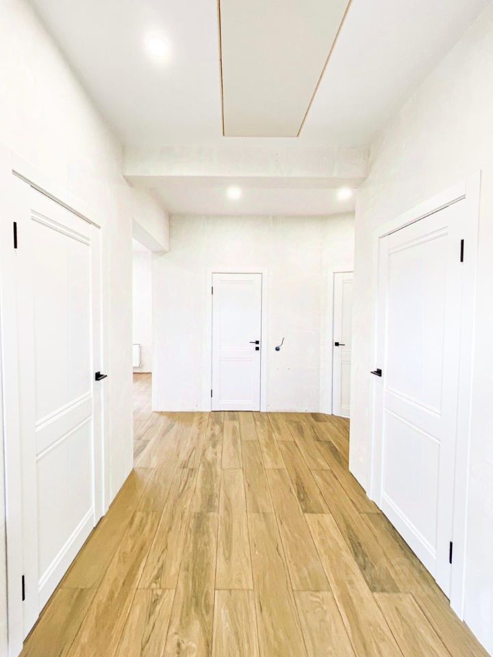 С площадью 85м2 и шикарным евроремонтом, в доме 3 комнаты, кухня-23м2, горячая вода и отопление — электрическое, вам осталось только поставить мебель и жить.
