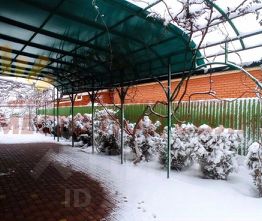 К дому примыкает гараж площадью 24.7 кв.м с повалом под ним. Категория земли - ИЖС. Во дворе есть летний навес, уложенная плитка, ухоженная придомовая территория, и много зелёных насаждений. Есть локальная канализация, электричество (220 В), вода из водопровода и магистральный газ.