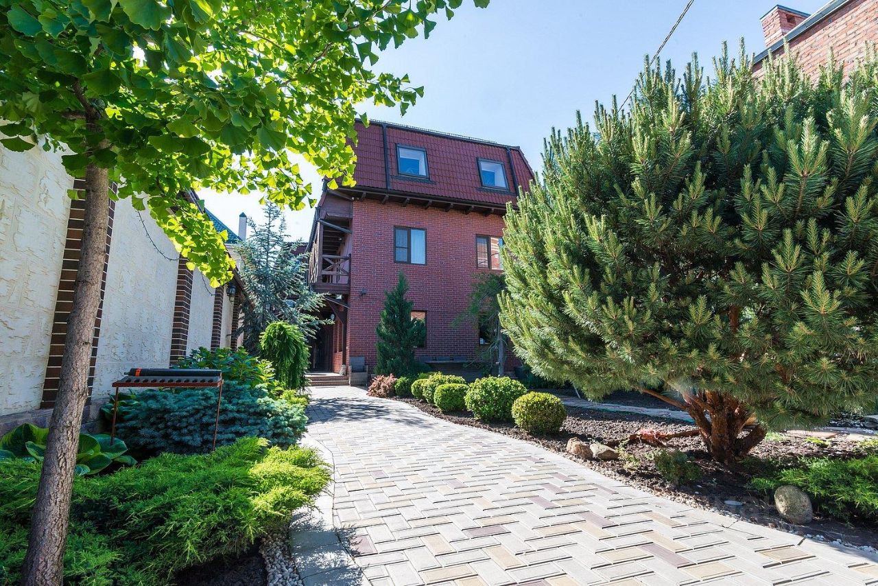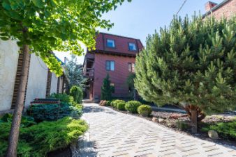 Коммуникаций, все централизованные. На территории дома есть гараж на одно парковочное место и навес на три парковочных места. Также есть домик для садовника и гостевой домик. Весь участок оборудован системой видеонаблюдения и стабилизаторами напряжения.