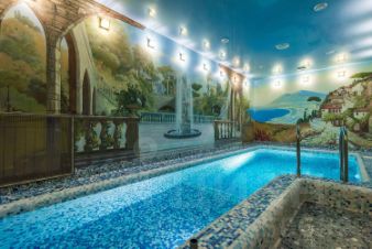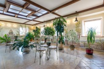 На втором этаже расположены три спальни, гардеробная, второй санузел и просторный кабинет библиотека площадью 50 квадратных метров. На третьем этаже находится спортивный зал, выполненный по всем стандартам. Также здесь есть зимний сад и две жилые комнаты с потрясающим видом на город.