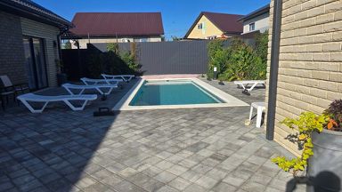 2 -гостевой дом 75 кв, 2 комнаты, просторная кухня гостиная, два с/у, дом имеет два выхода к бассейну.