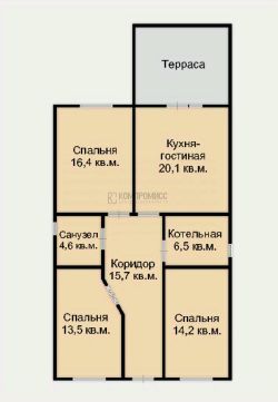 - 3 раздельные спальни, кухня с выходом на открытую террасу, санузел, котельная, коридор;