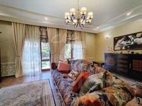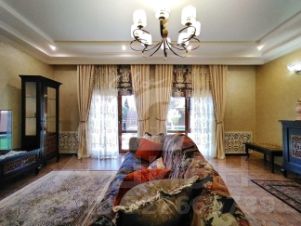 Дом с настоящим дизайнерским интерьером в классическом стиле, обставлен изысканной мебелью на заказ, оборудован всеми необходимыми инженерными системами. Неповторимый интерьер создан из выдержанных в едином стиле предметов интерьера, мебели, люстр и премиальных материалов отделки. Все в прекрасном состоянии! Дом идеален для большой семьи: на первом этаже холл, кухня-столовая, очаровательная гостиная с выходом во двор-сад, спальня, душевая и котельная. На втором этаже: три спальни, гардеробная и ванная. На мансардном этаже спортзал. Дом отапливается газовым котлом, газ - сетевой, смонтированы теплые полы. Установлено дорогое оборудование водоснабжения и отопления, фильтрации и смягчения воды.