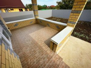Дом в предчистовой отделке и полным благоустройством двора,бетонный двор ,отмостка вокруг дома.
