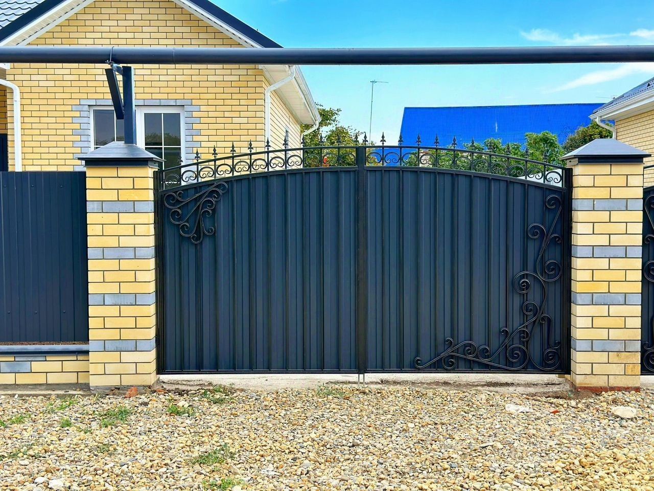 По периметру глухой забор из металлопрофиля и бетонным цоколем,септик на 12 кубов.