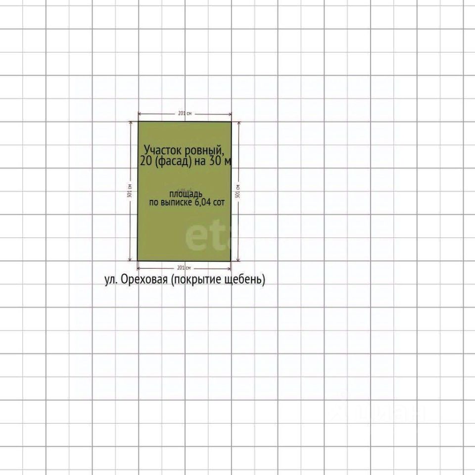 Участок ровный правильной формы - по фасаду 20 метров. В глубину - 30 метров.