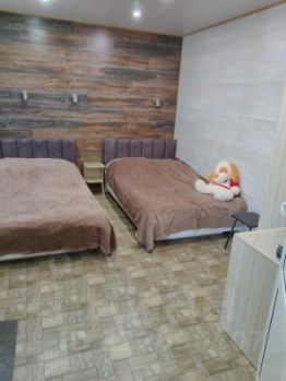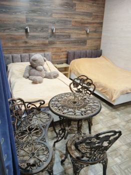 В каждом номере имеются оборудованная кухня, с/у с душевой, теплые полы, а также качественный ремонт, надежная техника, современная мебель, новый текстиль. Дополнительно в подсобном помещении 3 стиральных машины, сушилка, гладильный пресс, 2 морозильные камеры, 2 больших холодильника. Кованые столы и стулья возле каждого номера, удобные кресла. На общей площадке большие столы и скамейки, бассейн, детский спорткомплекс и уголок с игрушками. По всей территории дома бетон с тротуарной плиткой, парковка вмещает 15 автомобилей, перед домом 5 парковочных мест, ворота с автоматическим механизмом. Гостиница полностью автономна, видеонаблюдение вокруг дома, в каждом номере трансляция видео.