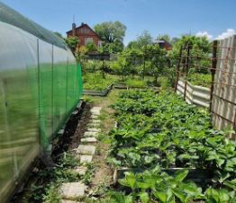 Участок ровный, правильной формы. Есть отличная действующая теплица.