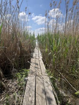 За домом огромный огород, уходящий в реку с собственной кладкой, участок огорожен с одной стороны фундучной рощей