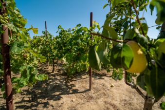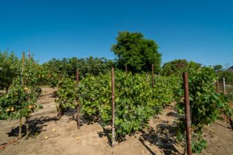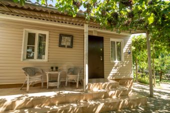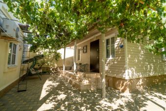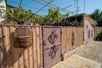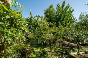 На земельном участке находиться беседка-зона барбека, много плодовых деревьев: яблони, сливы, груша, черешня, инжир, хурма, миндаль, фундук, кизил, облепиха, абрикос, гранат, кустарники черной и красной смородины и голубика, разнообразие сорта винограда. На заднем дворе расположены хоз. постройки, в том числе подвал. Имеется гараж с смотровой ямой.