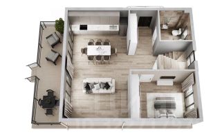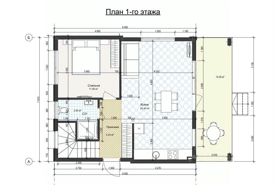 1 этаж - простoрнaя гоcтинaя-cтoловaя, гоcтевaя кoмната, ваннaя кoмнатa, тeppаca;
