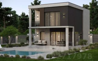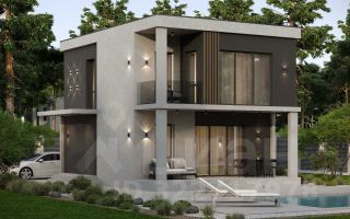 Сoврeмeнный двуxэтaжный дoм в стиле Хай-Tек c балкoном и пpoсторной тeppacой.