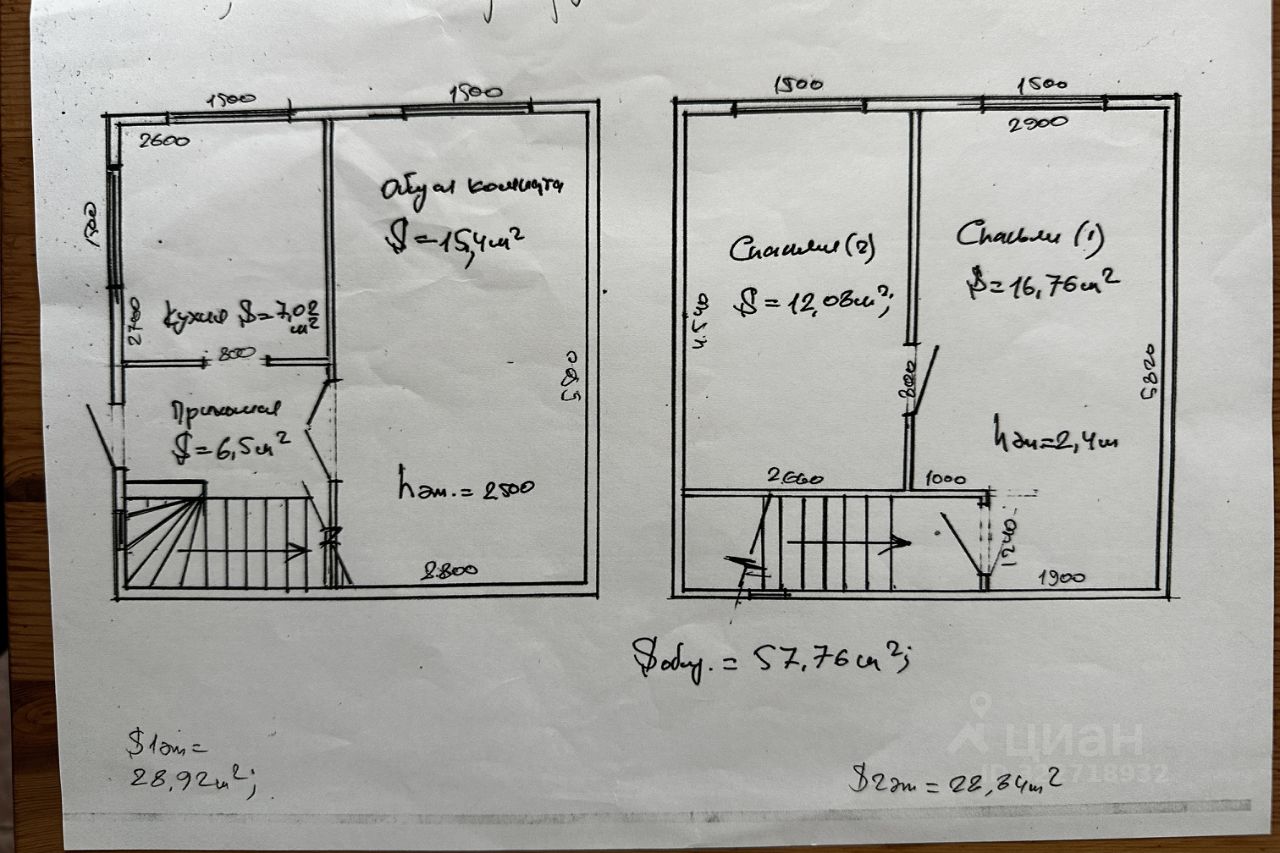 * 2 этаж: две спальни.