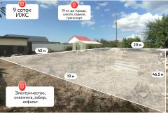 Фасад - 19 м, глубина - 47 м. Участок ровный, правильной прямоугольной формы. С фасада огорожен металлопрофилем, остальные стороны - рабицей. На участке уже есть электричество, скважина.
