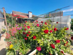 Благоустройство: большой двор с плиткой, многочисленные саженцы, плодовые деревья и цветы. Распашные ворота на пульте управления, парковочное место под навесом. Забор по периметру участка.