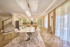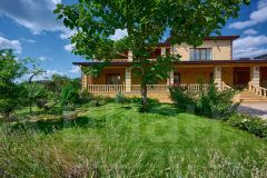 В доме сделан идеальный ремонт, в каждой спальне санузел и гардероб, кухня-гостиная около 100 м2, кабинет, великолепная терраса по фасаду дома и большая терраса на 2 этаже. Большой участок 16 соток, правильной формы, на котором бассейн, зона барбекю и много деревьев и зелени. Дом монолитный, стены толщиной 460-500мм возведены из кирпича с утеплителем и обложен настоящим Дагестанским камнем. Стеклопакеты утеплены с бронзовым напылением. В доме все коммуникации центральные, газ Котел 62кВ и бойлер 240 литров , вода, электричество 25 кВ, канализация. Тёплые полы, отопление и кондиционирование, система видеонаблюдения, освещение по всему периметру забора. Сделана зона парковки для авто. Дом строился для себя и об этом говорит, каждая деталь и все материалы использованные при строительстве. Для дома такого масштаба именно внутри Немецкой Деревни у нас отличная цена, приезжайте и убедитесь в этом.