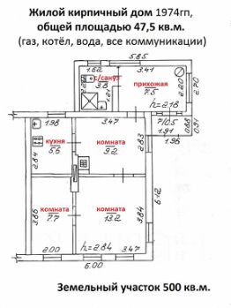 Станица Тбилисская, переулок Пушкинский (район СОШ 6). Жилой кирпичный дом 1974 г. п., общей площадью 47,5 кв. м., жилой 30,1. Три комнаты: (13,2+9,2+7,7); кухня-5,6; совмещенный санузел 3,8; прихожая 7,5. Высота помещений 2,84 м. Газ, котёл, вода, все коммуникации. Ширина фасада 8,80 м. Земельный участок 500 кв.м., для строения и обслуживания жилого дома. Тихая улица, удобный район - в ШАГОВОЙ и пешей доступности ШКОЛА, ЛЮБЫЕ МАГАЗИНЫ (в том числе фикспрайс, WB, OZ), автобусные остановки. Цена: 3 млн. 700 тыс. руб. ТОРГ. P.S.: Станица Тбилисская - административный центр Тбилисского района Краснодарского края. Расположена в центральной части Краснодарского края, на правом берегу реки Кубань, в 100 км на северо-восток от Краснодара, и на высоте около 102—105 метров над уровнем моря. Протяжённость станицы с запада на восток около 10 километров. Население — около 25 317 жителей. В станице весьма развита инфраструктура. В ней есть дошкольные учреждения, общеобразовательные школы, а так же церковно-приходская школа и школа искусств; библиотеки, кинотеатр, клубы, различные секции и кружки, коллективы народной самодеятельности, стадионы. Работает филиал МФЦ. На территории станицы действуют несколько крупных сельскохозяйственных и перерабатывающих предприятий: Тбилисский маслосырзавод, Тбилисский сахарный завод, маслопрессовый завод, предприятие по производству комбинированных кормов, семенной завод, завод Центр Соя, элеватор. Развита сеть торговых супермаркетов. В Тбилисской находятся два православных прихода Тихорецкой епархии Кубанской митрополии Русской Православной Церкви. Это Свято-Покровский храм и Храм святого апостола Андрея Первозванного. По северной окраине станицы проходит автомобильная дорога регионального значения Р251 Темрюк — Краснодар — Кропоткин, которая соединяет федеральные автодороги М4 Дон, и М29 Кавказ. В центре станицы расположена автостанция через которую проходят транзитные междугородные автобусные маршруты, а также автобусные маршруты местного назначения. В станице расположена и железнодорожная станция Гречишкино на линии Краснодар — Кавказская, Северо-Кавказской железной дороги. В станице действует 5 автобусных маршрутов, также существует несколько служб такси. Расстояние до крупнейших и ближайших городов (по автодорогам) Кропоткин 33 км. Краснодар 108 км. Майкоп 134 км. Армавир 107 км. Ставрополь 198 км. Ростов-на-Дону 257 км. Москва 1 309 км. до Азовского моря (г.Ейск) 260 км. до Черного моря: Анапа 278 км. Джубга 205 км. Новороссийск 270 км. Симферополь 549 км. Сочи 354 км.