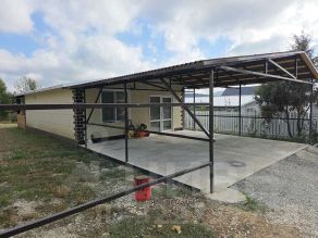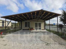 Благоустроенный двор, залита бетонная площадка под авто с навесом.