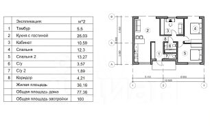 Планировка — прихожая, санузел основной и гостевой, кухня-гостиная, 3 спальни.
