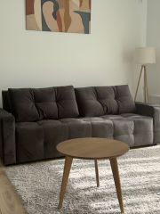 Обустроен качественной встроенной корпусной мебелью( кухня, встроеный шкаф-гардеробная) оборудованный санузел.