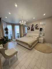 2 этаж: кабинет с выходом на балкон, большой санузел, кладовка-гардеробная и 3 спальни, детские 2, гостевая) входная группа с кирпичнымм колоннами по периметру металлический экобрус в цвет металлочерепицы и металлопрофиль. Баня на участке, сад, временный бассейн, его мы забираем и оставляем покупателю стационарный бассейн с подогревом, подсветкой и шикарную мангальную зону. Шикарный навес по периметру, терасса в керамограните, двор в брусчатке, сад без единой травинки, система авто полива. Улица заселена вся, Находится в самом сердце инфраструктуры, а также вдали от шума и пыли. В будущем дорога будет заасфальтирована. В 5 минутах хотьбы от новой современной школе на 1700 человек, детские сады, школы все что душе угодно Пятерочки, магниты, поликлиника, все в пешей доступности. Поселок один из самых востребованных с наичистейшим воздухом. Дружелюбные соседи, близость Краснодара, все это будет вашим. Цены в поселке растут с каждым днем! Грамотное вложение. Ремонт в светлых тонах, мебель, техника все останется, спальный гарнитур ormatek, в этом доме есть чтобы чувствать себя на высотескину полное видеопросьба агентов звонить по реальному покупателю.