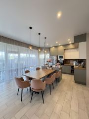 1эт-большая спальня с собственным санузлом и гардеробной, далее свободный холл, общий санузел, отдельная котельная с дорогим двухконтурным котлом и выходом на улицу и конечно кухня-гостинная с волшебным остеклением, и божественным светом с выходом на терассу. Видеонаблюдение, современные домофоны, тройная мистера отчистки воды, пьем из под крана, причем не платим за нее.