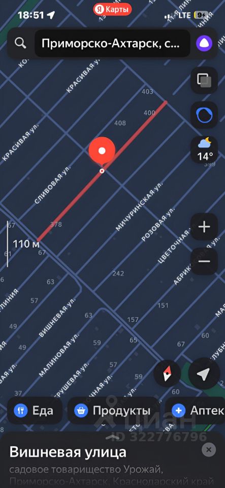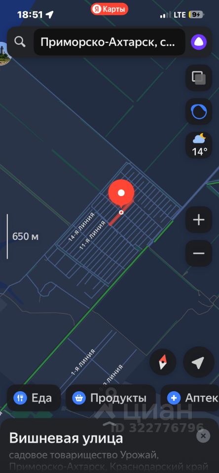 Участок правильной формы, ровный, расположен в СНТ "Урожай" на ул. Вишнёвая 375.