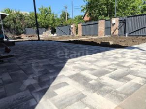 Участок будет огорожен забором (широкие кирпичные столбы), установлены ворота, калитка, тротуарная плитка, навес. на данный момент на стадии строительства (на текущий момент монтируется электропроводка).