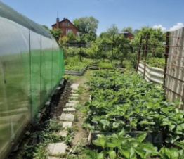 На участке посажены фруктовые деревья: персик, груша, алыча, кизил, черешня, фундук, грецкий орех, вишня, абрикос, инжир. Посажено 5 сортов винограда, 2 сорта клубники.