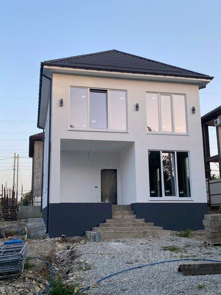 -дом оштукатурен, сделано утепление фасада (пенопласт 5см.), декоративная штукатурка кароед, фасад окрашен, дом остеклен, смонтирована кровля, установлена входная дверь, оштукатурены стены(white box) , сделана стяжка пола,
