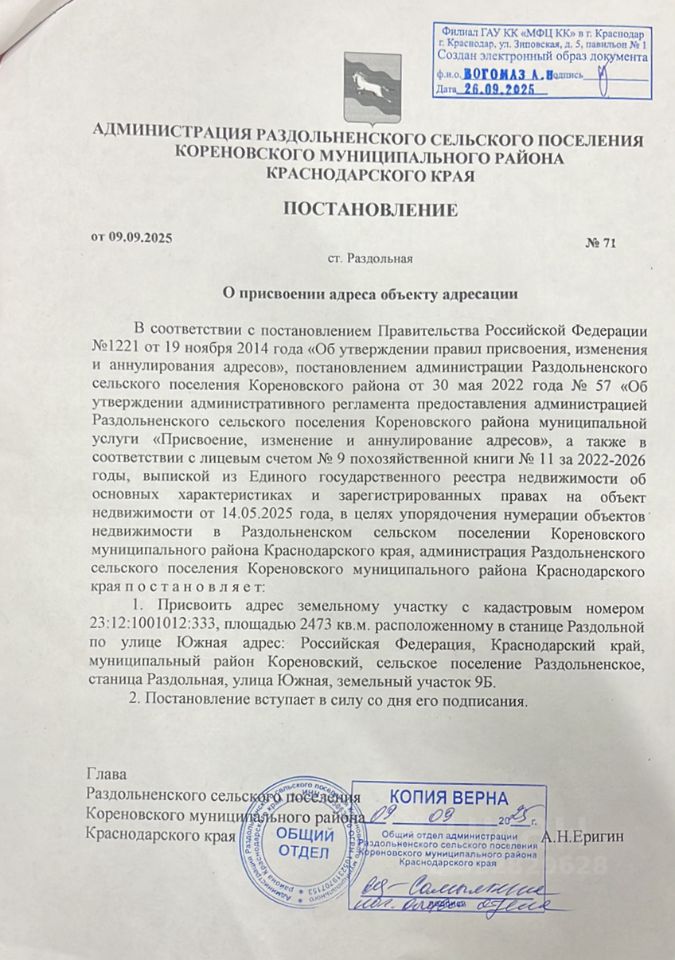 Земельный участок ИЖС с новыми документами. Находится на незатопляемой части станицы.Участку присвоен адрес Краснодарский край, станица Раздольная ул. Южная 9Б. Кадастровый номер 23:12:1001012:333.