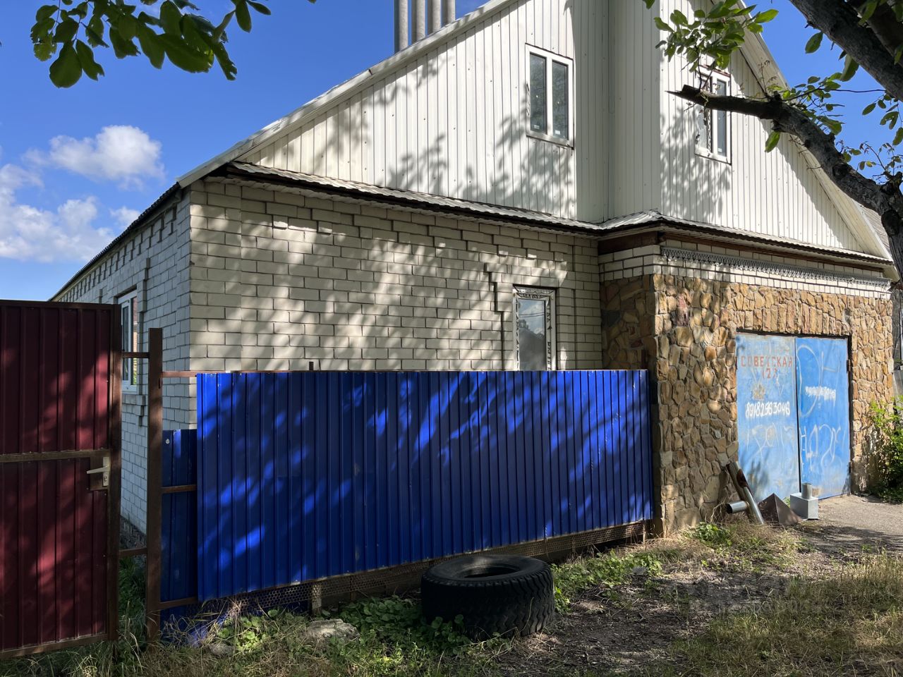 Продаётся дом, блочно кирпичный без внутренней отделки, 2010 года постройки, в районе Вечного огня, по ул. Советская, 127 (угол ул. Ворошилова), пл. 111 кв.м. В доме 4 комнаты, помещение для ванной и котельной. Стены оштукатурены, потолок подшит и утеплён, полы засыпаны и забетонированы. Отопления нет. Свет, вода из скважины, проведена канализация, сделана выгребная яма. ПВХ окна. Имеется гараж (в доме), земельный участок 4,2 сотки (в собственности, проведено межевание), размером 26м*16м. Во дворе залит фундамент в землю для строительства дома, размером 12м*10м. Дом в эксплуатацию не сдавался и не регистрировался. Придворовая территория. Асфальтированная дорога. Место подходит под коммерцию (бизнес). Один собственник.