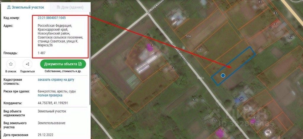 Земельный участок: кадастровый номер 23:21:0804007:1045