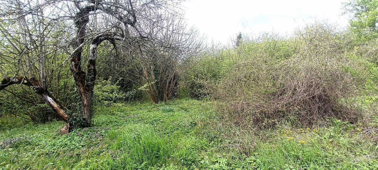 Приусадебный участок- 8 соток. С плодоносящими деревьями — яблони, груши, персик, фундук. Участок требует ухода, зарос травой и кустарником, не обрабатывался около двух лет. Электричество по границе участка. Вода на небольшой глубине 7-15 м, надо бурить скважину или делать колодец.