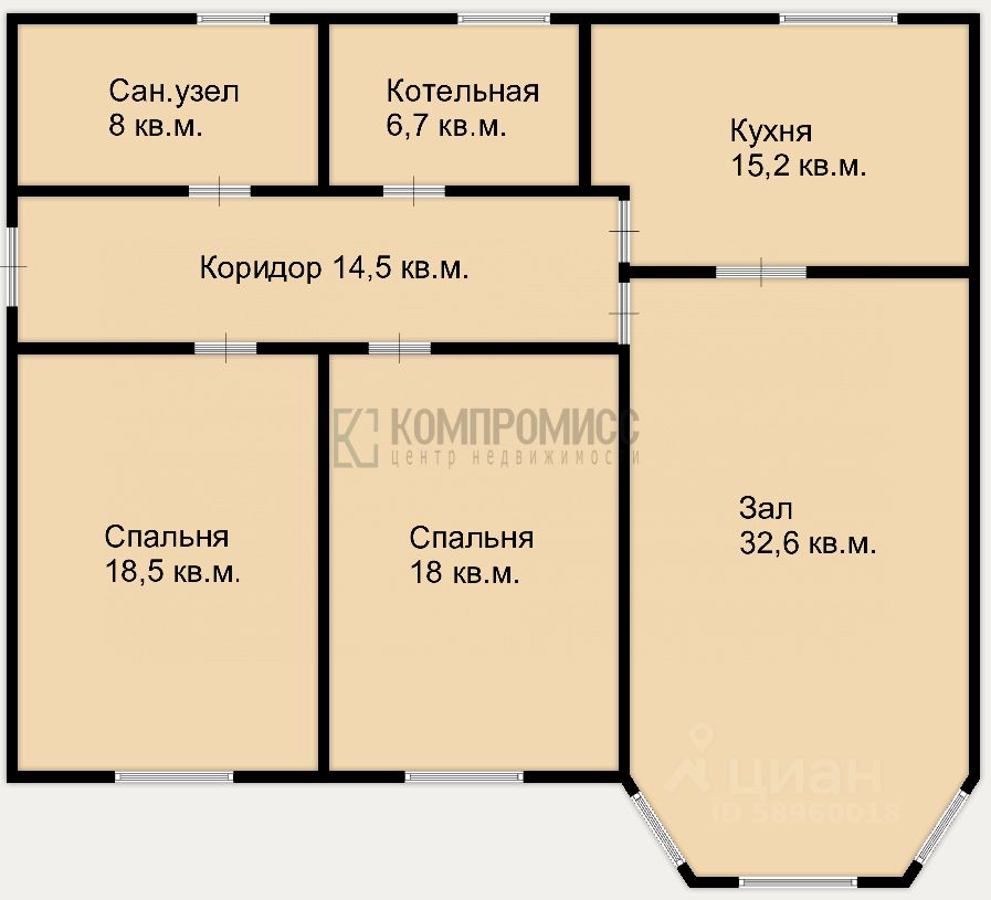 В доме 2 спальни, зал, кухня, сан.узел, котельная.